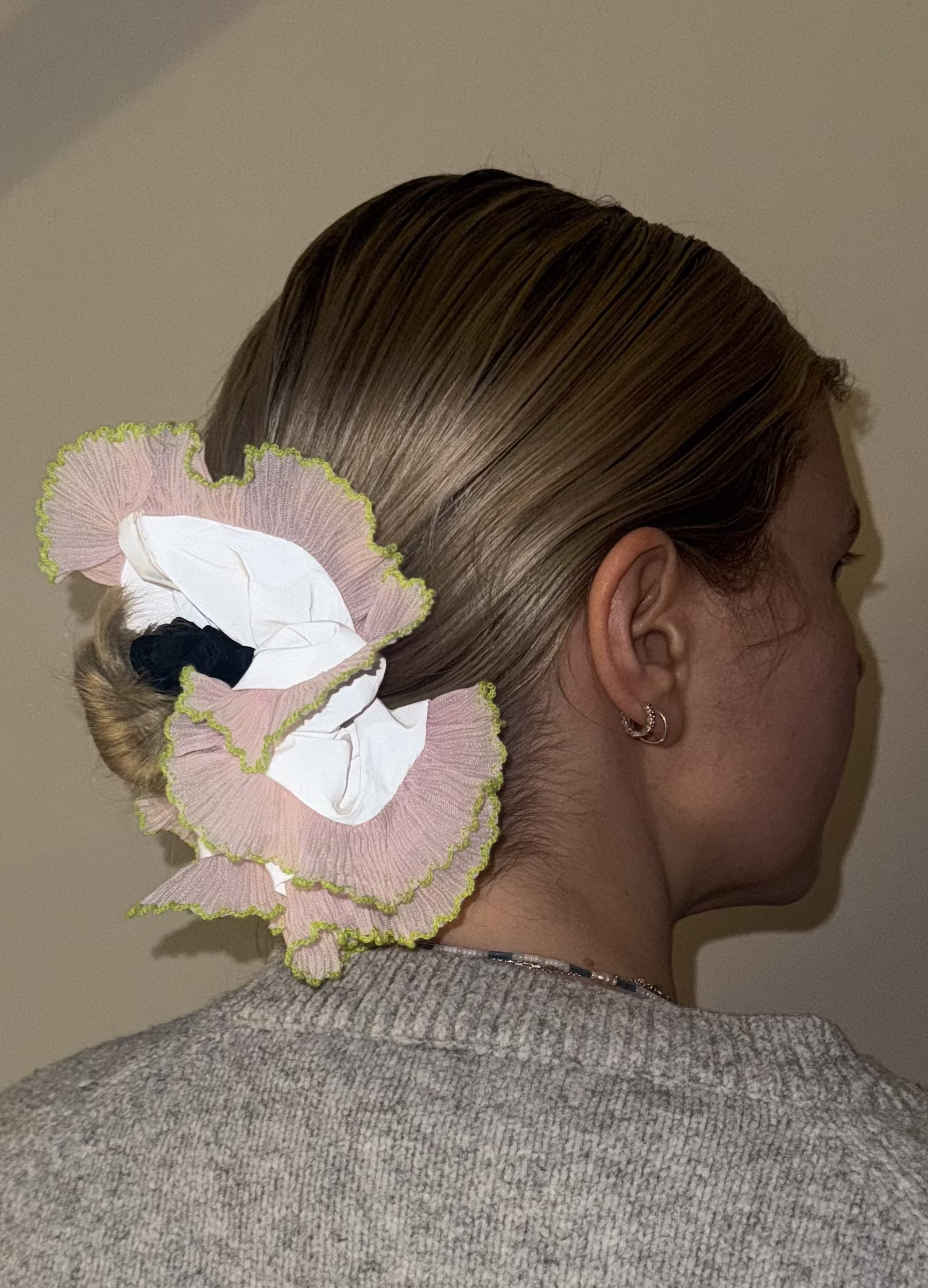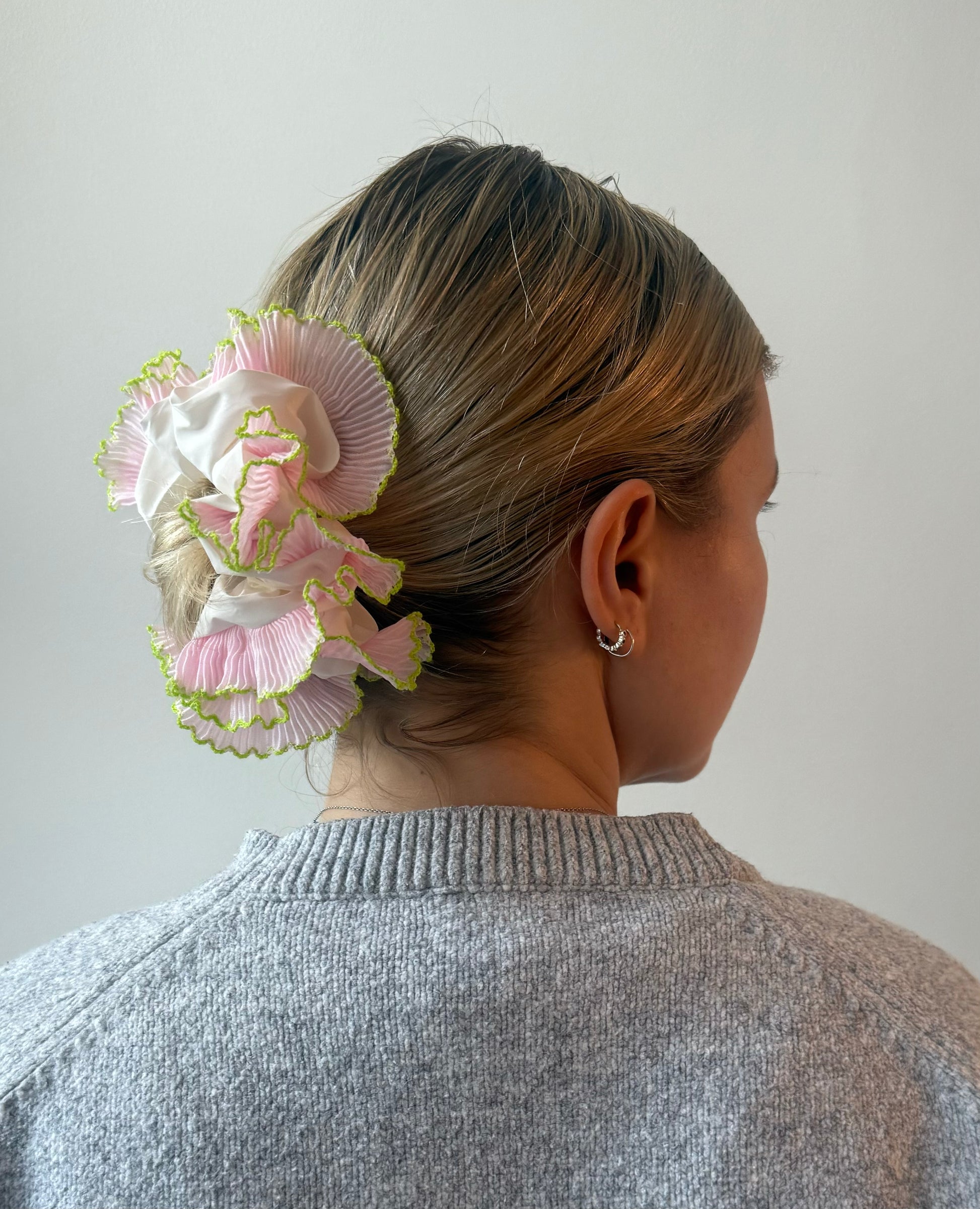 Our scrunchies are full, fluffy, and comfy on the wrist. Each one has a circumference of approx. 18–20cm and works for most hair types.