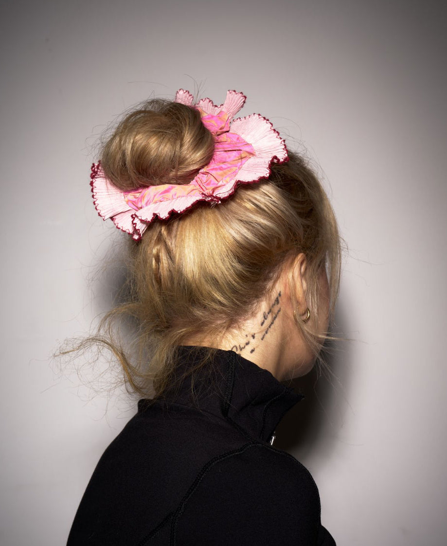 Our scrunchies are handmade in the UK from deadstock (where we can) silks to crisp cottons. Chosen with care and often sewn in limited runs. Designed to hold tight without pulling, they’re gentle on your hair, light enough for fine strands, and cute enough to double as a wrist accessory.