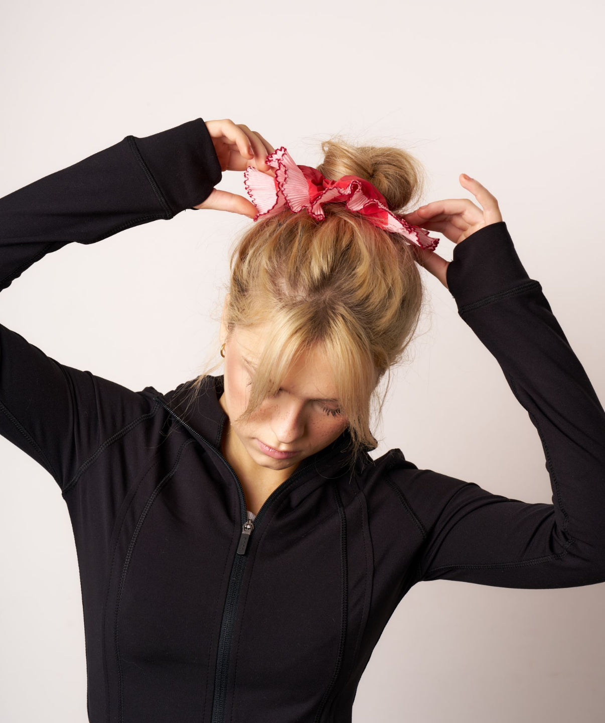 Yes! Our scrunchies are very lightweight and designed to hold gently without slipping. Founder, Anastasia wears hers with a bob, so whether you're working with short layers or fine strands, they'll stay put without dragging your hair down. Perfect for mini ponies, half-ups, or just looking cute on your wrist.